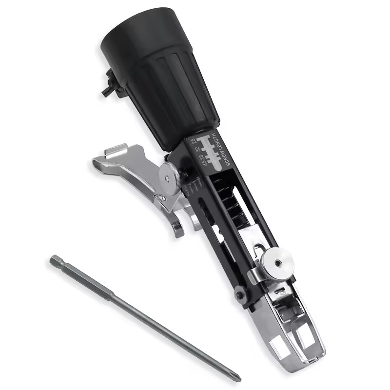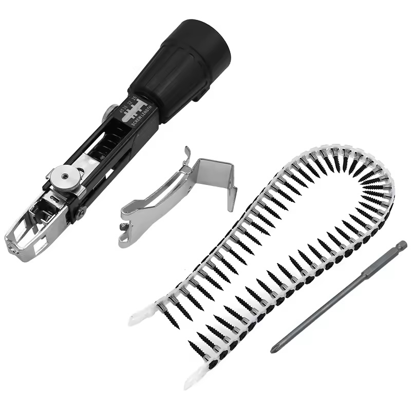 Conçu pour s’adapter à la majorité des perceuses et visseuses électriques, cet outil rend le travail plus rapide, plus propre et beaucoup moins fatigant. Il suffit de fixer l’adaptateur sur votre perceuse, d’insérer la bande de vis et de commencer à travailler comme un professionnel.