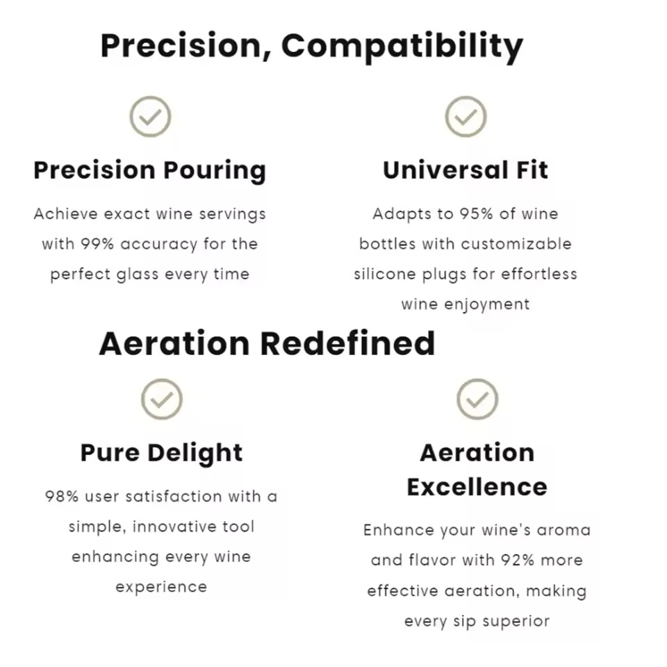 ✔ Oxygénation instantanée améliorant la saveur et l’arôme du vin
