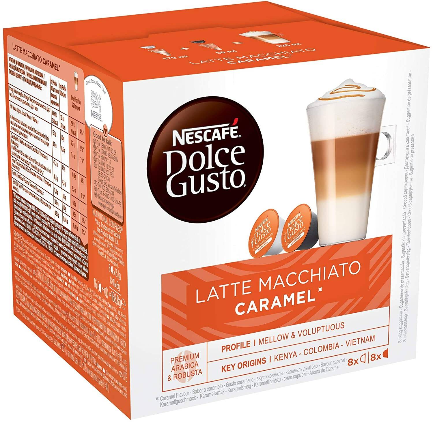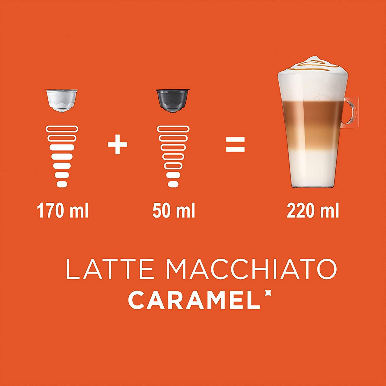 Découvrez le sensationnel Latte Macchiato Caramel NESCAFÉ® Dolce Gusto®. Plus onctueux que le Cappuccino, cette icône italienne joue avec les superpositions, dans un mélange unique de lait chaud, de café velouté et de mousse voluptueuse.