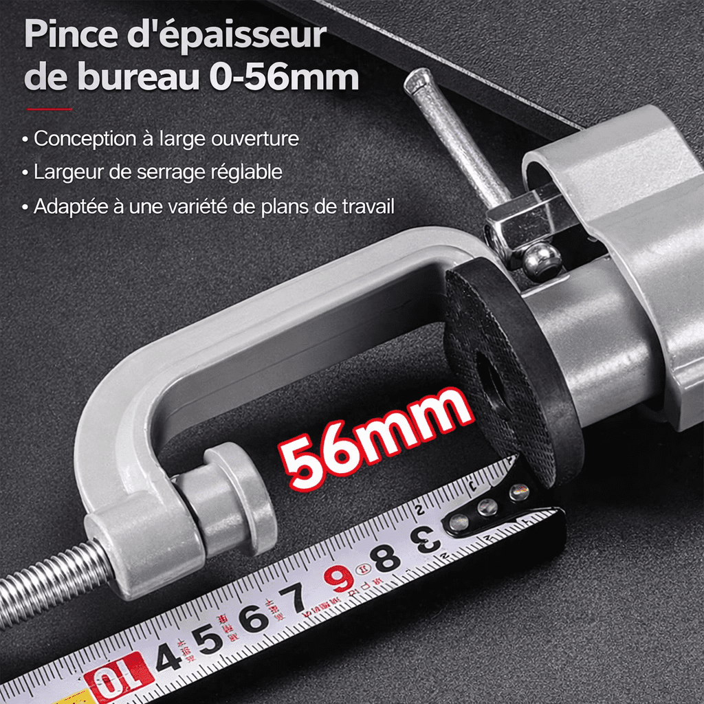 Son système de serrage robuste s’adapte à de nombreuses surfaces avec une capacité de serrage de 0 à 56 mm, ce qui le rend compatible avec la plupart des tables, établis et plans de travail.