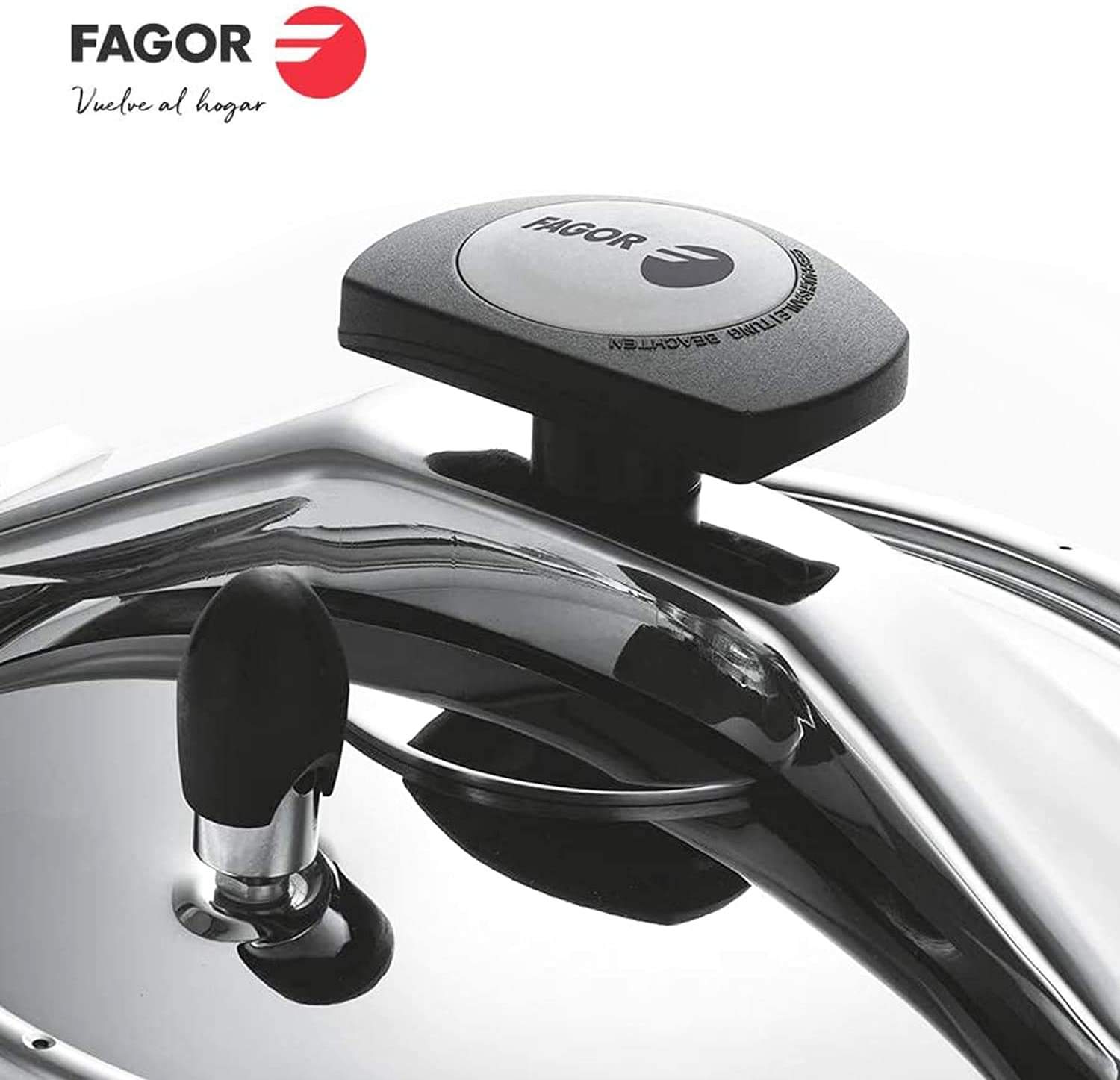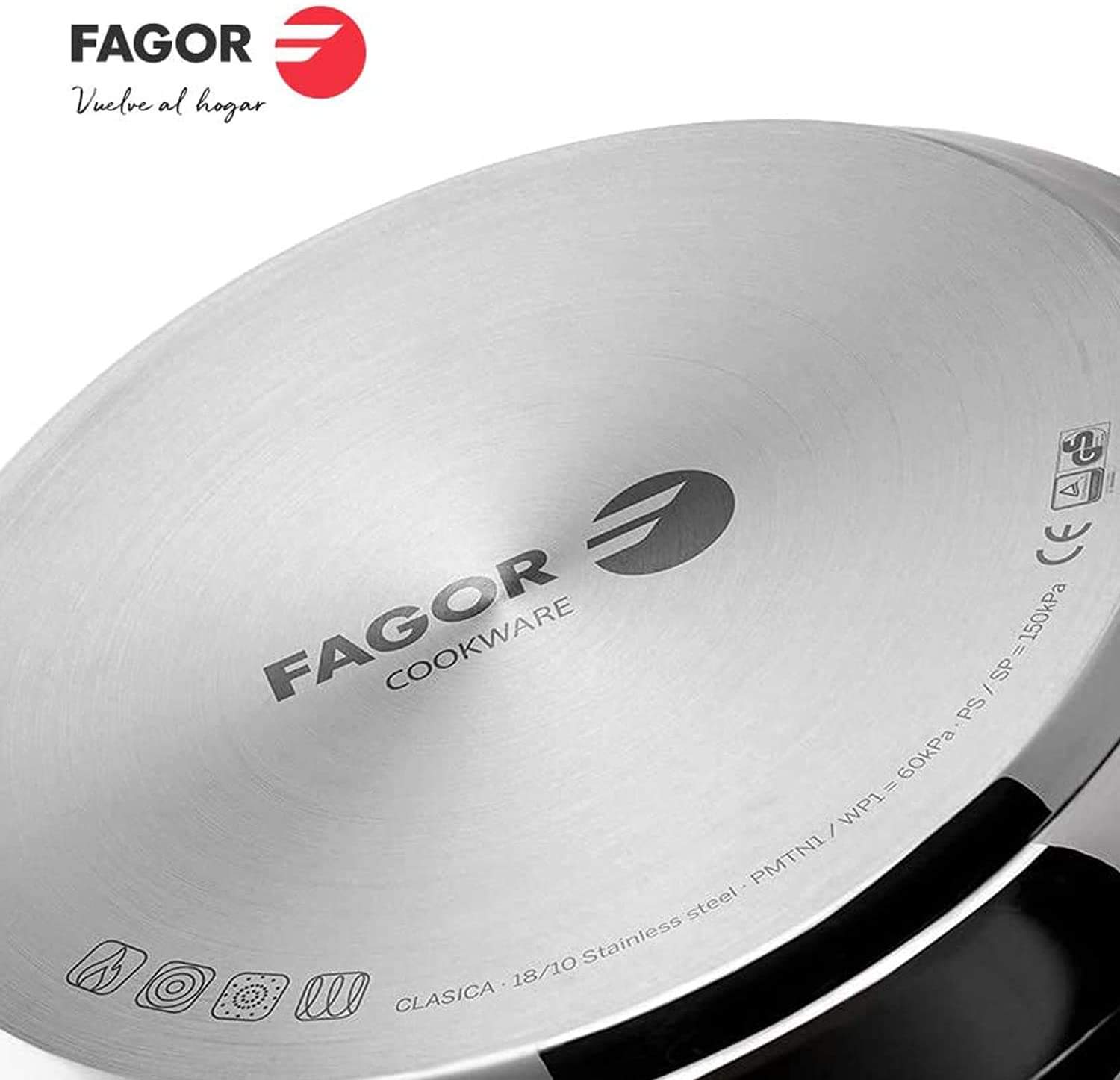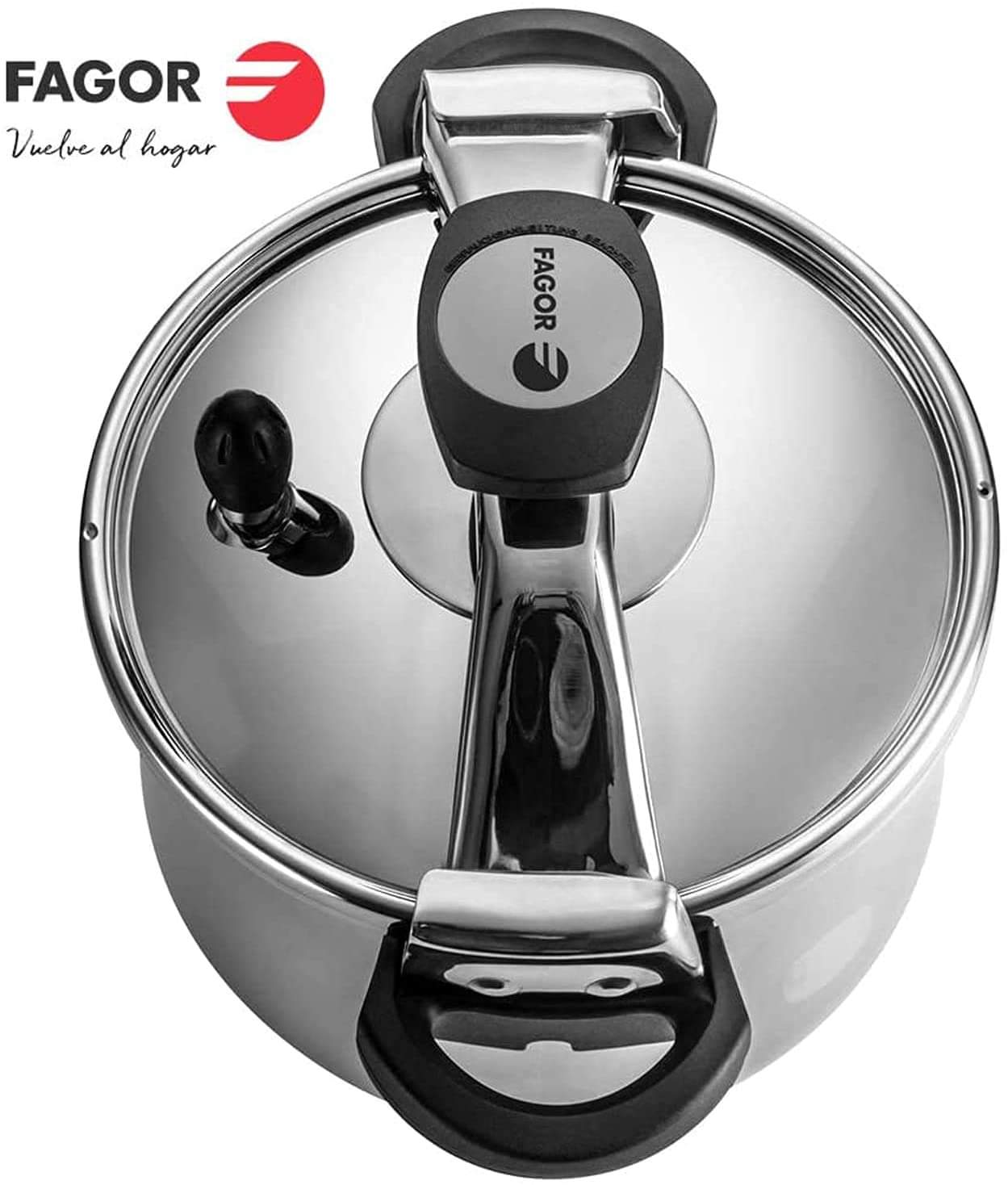 FAGOR Autocuiseur traditionnel en inox de capacité de 6 litres avec une poignée bakélite, un panier vapeur, une soupape de fonctionnement et une seconde de sécurité ainsi qu’un seul niveau de pression. Le pont est plus robuste et résistant pour une utilisation optimale.