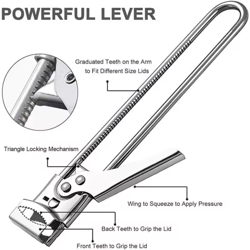 Dites adieu aux couvercles trop serrés! Cet ouvre-bouteille et ouvre-bocaux multifonction est conçu pour ouvrir facilement toutes sortes de pots, bouteilles, canettes et couvercles. Grâce à son mécanisme réglable et sa construction en acier inoxydable, il garantit une prise ferme, un gain de force et une utilisation confortable au quotidien.