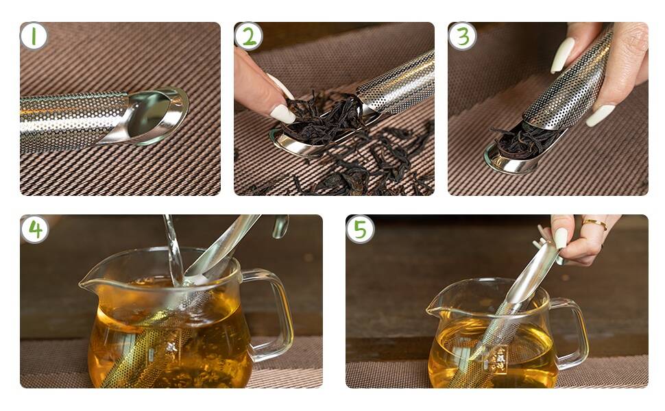 • 🍵FACILE À UTILISERTirez simplement sur la passoire,ajoutez le thé au bâtonnet de thé,couvrez la passoire,versez de l’eau chaude dans votre tasse,attendez un moment,laissez infuser complètement et vous êtes prêt à déguster votre thé.