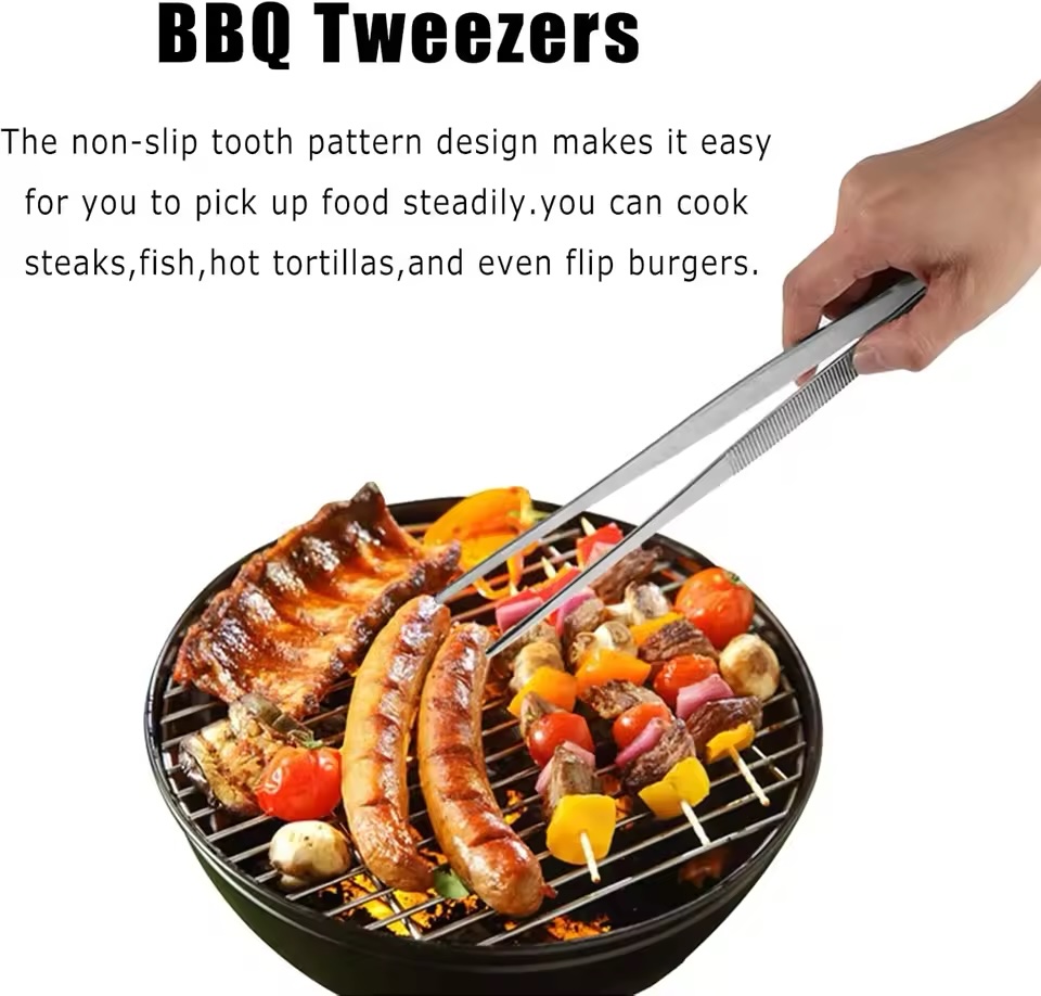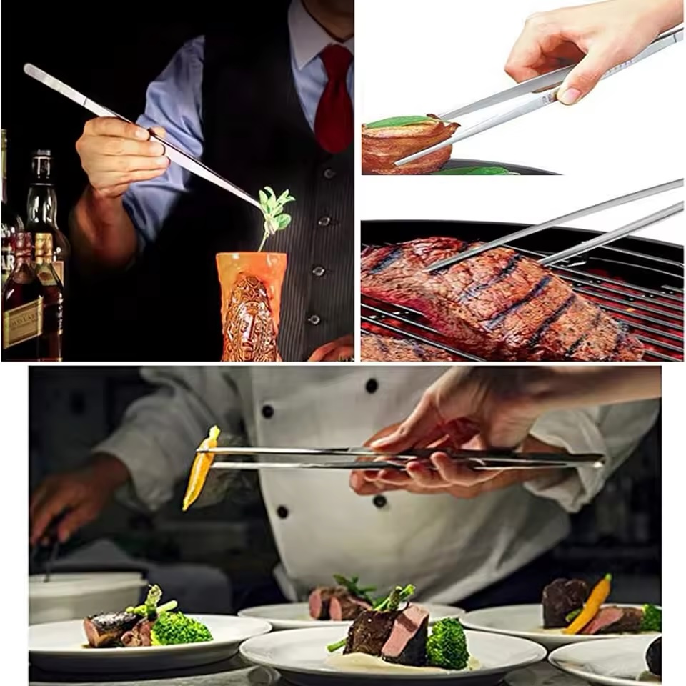 Ce pack de 2 pinces à épiler droites en acier inoxydable est l’outil idéal pour une manipulation précise et sécurisée au quotidien. Grâce à leurs longueurs de 25 cm et 30 cm, ces pinces permettent de saisir, retourner et manipuler facilement les aliments ou objets chauds sans risque de brûlure.