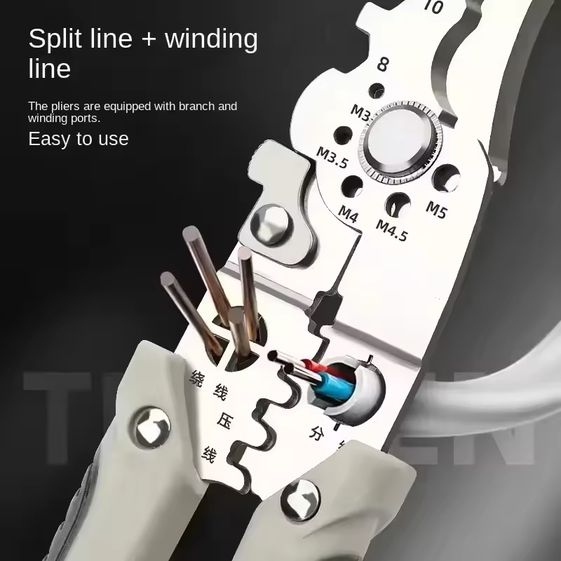 4 en 1 : coupe les fils, dénude les câbles, sépare les conducteurs et assure un maintien stable.