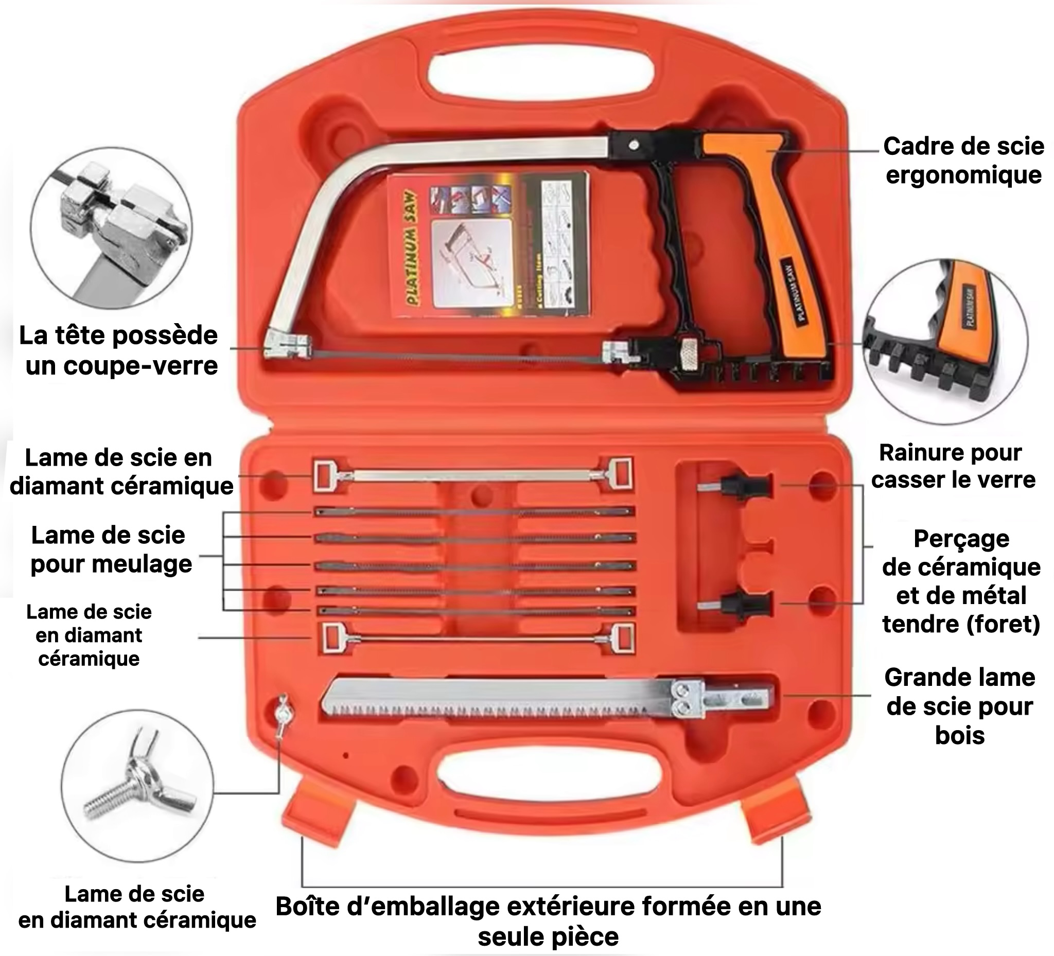 ✔ 12 pièces complètes : lames multiples + mini scie + accessoires